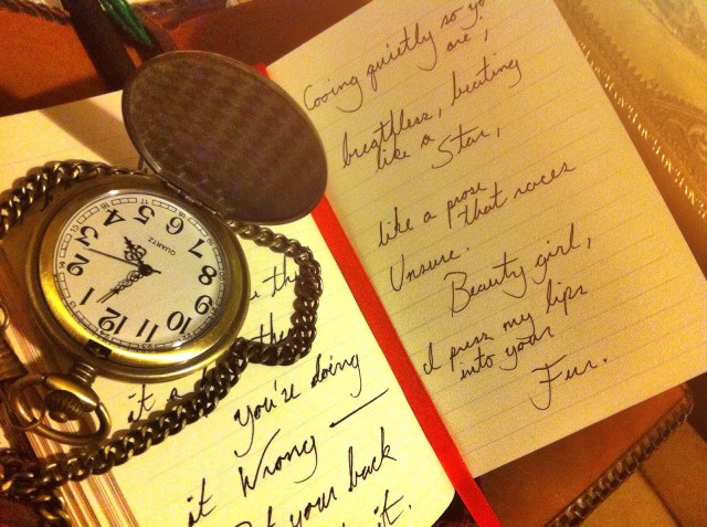 Pocket Writings #01 Cooing quietly so you are; breathless, beating like a star, like a prose that races unsure. Beauty girl, I press my lips into your fur. Share this: Share on Facebook (Opens in new window) Facebook Share on X (Opens in new window) X Share on Pinterest (Opens in new window) Pinterest Share on Tumblr (Opens in new window) Tumblr Share on Telegram (Opens in new window) Telegram Share on Reddit (Opens in new window) Reddit Share on Pocket (Opens in new window) Pocket Like Loading...